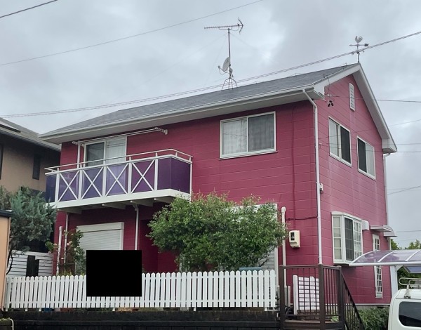 外壁全体に色あせが見られ、紫外線や雨風の影響による塗膜の劣化が進んでいました。
