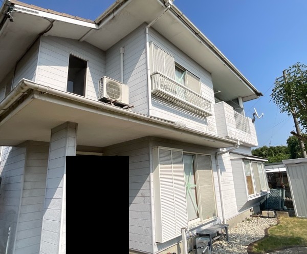 外壁全体に経年による色あせや汚れの付着が見られ、特に日当たりの良い面では塗膜の劣化が進み始めている状態でした。